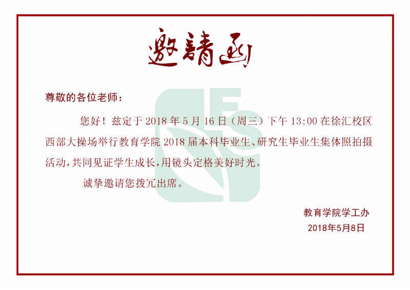 2018届本科毕业生、研究生毕业生毕业照拍摄邀请函