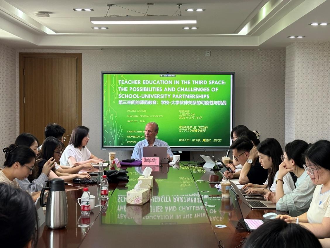 2024年6月15日上午,英国诺丁汉大学荣休教授Christopher Day(戴杰思)受邀在教苑楼A704会议室为我院师生带来题为“第三空间的教师教育:学校-大学伙伴关系的可能性与挑战”的主题报告。此次讲座由太阳集团9728曾艳副教授主持,太阳集团9728副教授吕杰昕及十余名博士、硕士研究生参与了本场活动。
