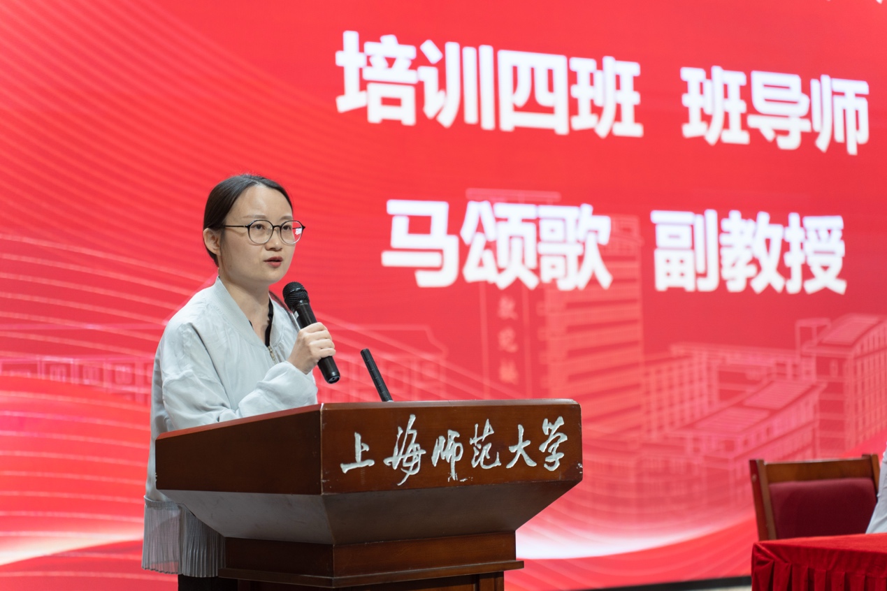 年轻的老教师、已当过十多届班导师的马颂歌副教授作为班导师代表发言。她表示:时代确实变了,但是十三年来没有改变的是新教师们一定带着诸多疑问前来,也一定期待有人扶上马、送一程。她提醒道:作为教师和科研工作者,还是不要急着拿走一些成品。如果有时间,还是要多看看制作成品的原材料、思路和过程,最终生成属于自己的独一无二的创造,或许正是这种创造,才是新教师们在人工智能面前屹立不倒的关键。