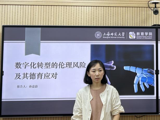 首先,孙嘉蔚老师以“数字化转型的伦理风险及其教育应对”为主题,围绕数字时代的伦理议题和德育转型、数字化转型的伦理风险与德育影响以及面向数字化伦理风险的德育应对路径三个方面进行了详细介绍,最后孙老师指出在智能时代,我们只有更好地认识数字化转型给我们带来的伦理风险,才能更好地发挥技术的作用。紧接着进行分享的是卓晓孟老师,她的研究聚焦于“智能时代知识发生观与学习理论重构”,卓老师分别从知识发生与素养生成的关系、智能时代的学习观、智能时代知识学习理路重构和智能时代知识学习变革的应对几个方面展开论述。卓老师认为,在智能时代,我们更应该注重知识生产的经济性与学生主体性之间协调。最后进行分享的是林琳老师,她的主题为“认知发展视角下个性化项目式学习的设计及效果研究”,林老师的研究将项目式学习与个性化方法结合,探索认识发展视角下的个性化方法是否能够解决项目式学习中对学业成绩提升的非显著性问题,作为一种创新的探索性尝试,林老师的研究对一般项目式学习的优化提供了一个成功的实践案例。