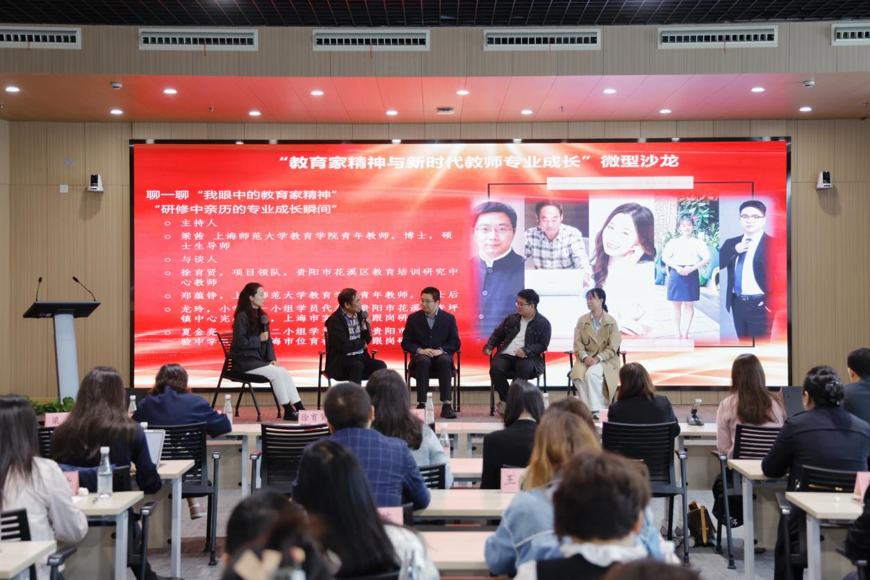 项目班主任梁茜博士主持了“教育家精神与新时代教师专业成长”微型沙龙,与谈人徐育贤老师、郑蕴铮博士、龙玲老师和夏金亮老师共同探讨了教育家精神的内涵,以及新时代如何弘扬教育家精神,促进教师专业成长。情真意切的发言引发现场教师的共鸣。