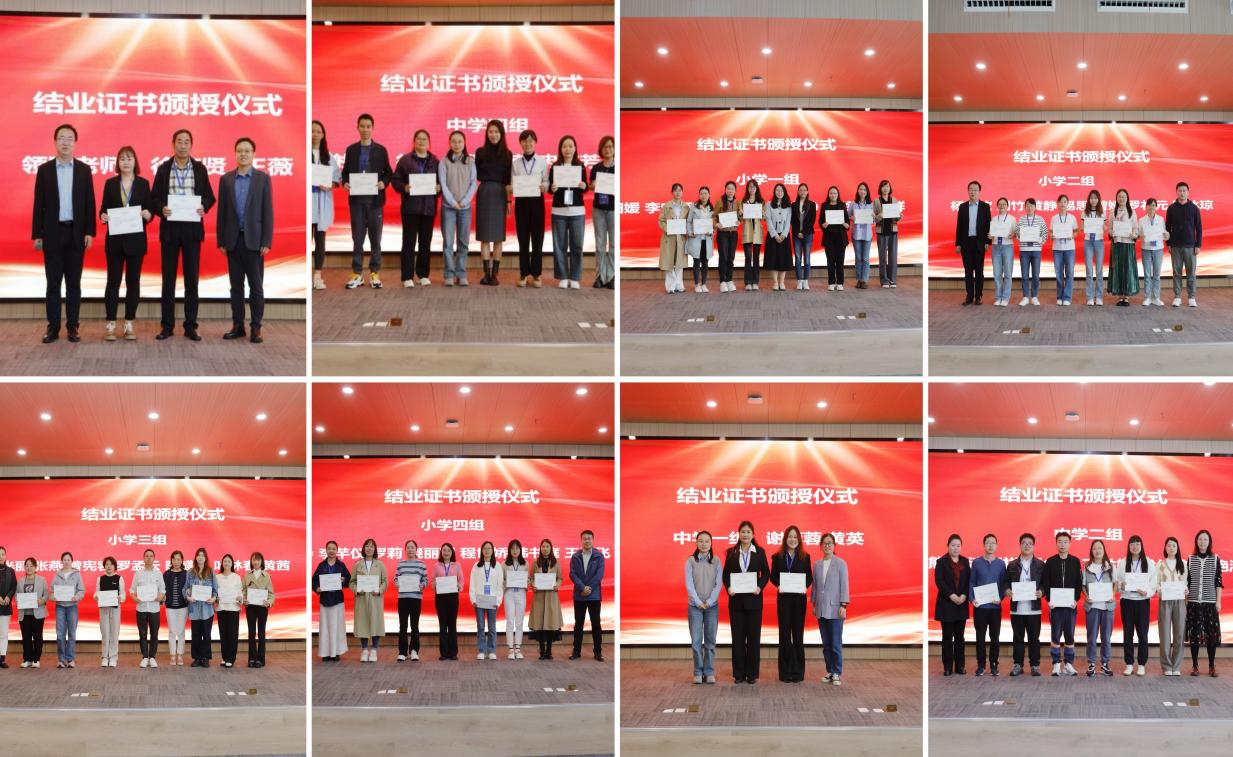 宁波副院长代表项目承办方宣读结业学员名单。基地学校带教老师和学院青年博士共同为学员颁发结业证书。