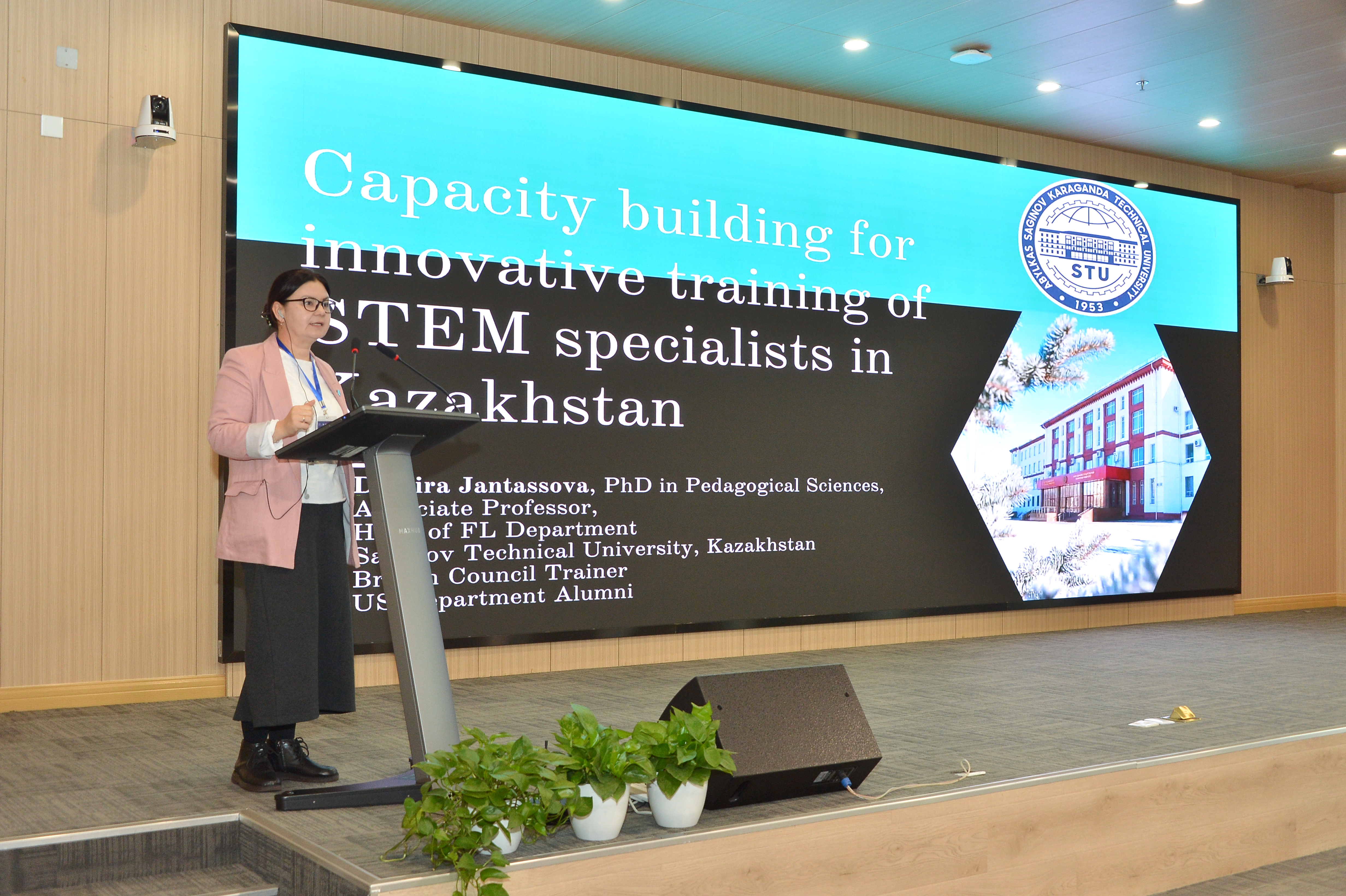 在演讲环节中,哈萨克斯坦高校和中国高校各有六位专家发言。哈萨克斯坦国立欧亚大学院长Tatyana Kemaikina分享了本校学生领导委员会的宝贵经验。阿特劳大学经济与法律学院研究生院院长Elmira Adiyetova发表了题为“在学术领导力委员会:院长学校中的个人专业发展”的演讲。亚萨韦哈土国际大学工程学院副院长Aktolkyn Agabekova阐述了情商在发展学术领导力中的重要性。卡拉干达技术大学外语系主任Damira Jantassova教授分享了该校利用数字技术提高办学国际化水平的经验。巴甫洛达尔国际师范大学教务处处长Aliya Zhakienova 报告了全球化背景下区域高校面临的挑战与机遇。阿利汗·博凯汗大学国际事务办主任Marzhan Iskakova介绍了该校开设分校的计划并分析了不同利益相关者在高等教育高质量发展中可以扮演的角色。