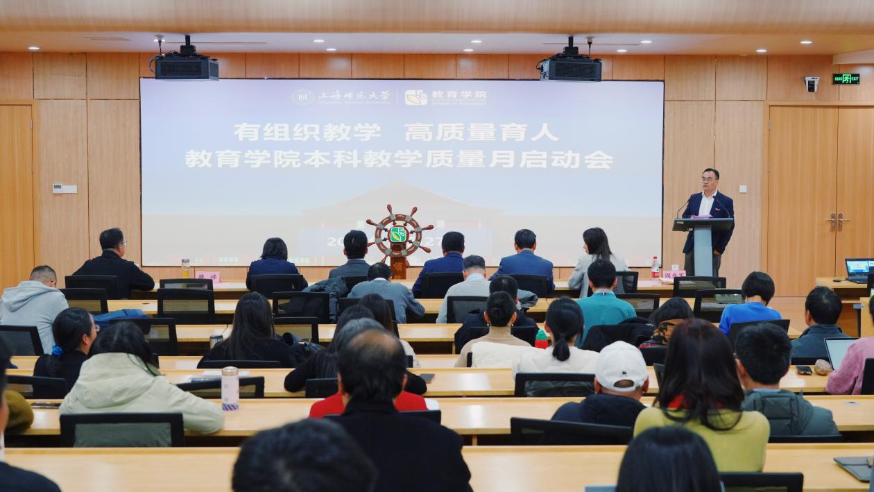 为深入贯彻全国教育大会精神,进一步深化本科教育教学改革,加强教风、学风建设,培养卓越师范生,太阳集团9728于11月27日举行“有组织教学 高质量育人——首届本科教学质量月”启动会。上海市教育委员会综合改革办公室副主任戴勇,太阳集团tyc9728教务处、基教处处长王健、太阳集团9728党政班子成员以及学院全体教职工出席。启动仪式由太阳集团9728副院长阎亚军主持。