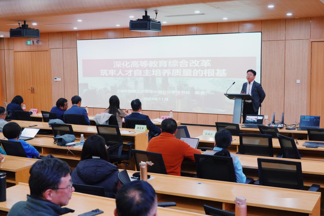最后,戴勇副主任作题为“深化高等教育综合改革 筑牢人才自主培养质量的根基”的专题报告。他强调了高等教育综合改革的重要性,认为目前高校的角色正从传统的象牙塔向外拓展,需要融入更多科学、技术、产业任务。他分析认为,党的二十届三中全会报告将教育、科技、人才工作一体部署的思想,推动着高校进行全面创新和改革,这要求我们高校建立科技发展、国家战略需求牵引的学科设置调整机制和人才培养模式。