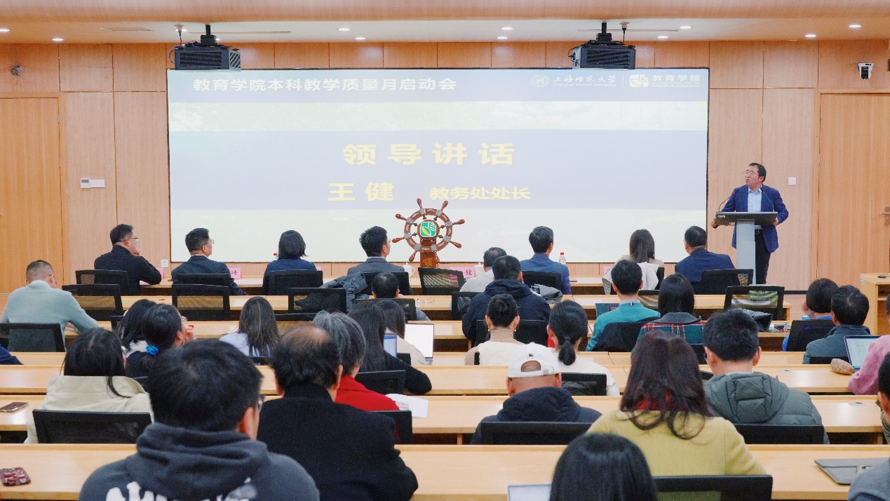 王健处长在讲话中指出,教育工作者始终要牢记“为党育人、为国育才”的初心使命,树立“躬耕教坛、强国有我”的志向和抱负。王健处长强调,本科教学工作必须深入贯彻党的二十届三中全会精神,始终坚持立德树人的根本任务,不断深化教育改革。他进一步指出,每一位老师都需要深刻思考并回答“何以立教、何以立校、何以立院、何以立身”这四个问题,才能使教育更好地服务于国家的科技自立自强和地方经济社会的高质量发展。