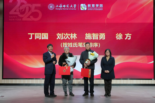表彰先进环节,王荣生、张民选、杨德广、杨伊、胡卫(按姓氏笔画排序,下同)荣膺“杰出贡献奖”。他们于教育领域深耕不辍,成就斐然,在学科发展进程中发挥着引领示范之效。他们的精彩发言激励着全院教师坚守初心、勇攀高峰,以热忱和专业投身教育,助力学院持续发展。丁炜、黄友初以其敬业精神与卓越教学能力荣获“教书育人奖”;于文浩、孔令帅、李廷洲、宋佳、陈建华、李佳丽、李星辰、吴振华、林琳、郁赟、谈苏欣、陶媛、徐瑾劼、粟帆等14位教师凭借在学术研究方面的创新成果摘取“学术创新奖”;宁波、黄友初、潘冬冬因卓越的专业造诣和不懈的进取精神荣获“优秀人才奖”;丁同国则凭借在服务岗位的杰出表现获得“优质服务奖”。这些奖项不仅是对获奖者个人的认可,更是学院积极向上氛围与追求卓越精神的集中体现。