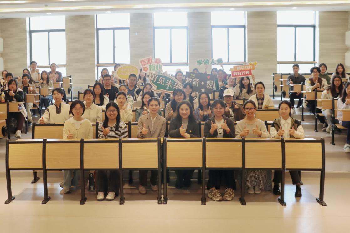 宓莹指出,教育的根本任务是立德树人,学校要培养具备“慧之怀(有理想)、会之才(有本领)、惠之爱(有担当)”的时代新人,当代教师应当以教育家精神为引领,立德修身、敬业立学、教书育人。师范生们要向陶行知、于漪、张桂梅等教育家学习,在实习实践中严谨教风、崇尚师德、尊重学生、公平公正,在扎根一线教学中弘扬和践行教育家精神。