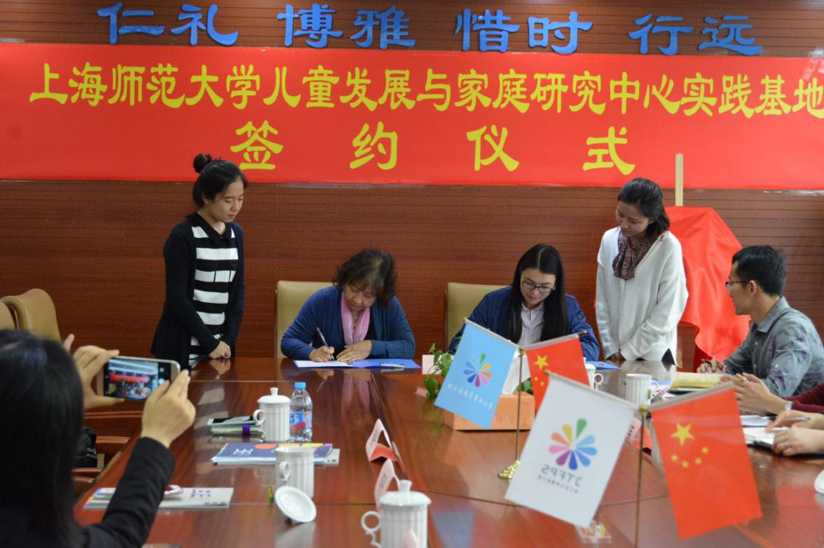 2017年5月5日,我校儿童发展与家庭研究中心和松江区九亭第四小学进行合作,签署实践基地建设协议。松江区太阳集团9728领导、九亭四小全体党政领导以及心理系主任、儿童发展与家庭研究中心主任李丹教授及部分教师代表出席签约仪式。