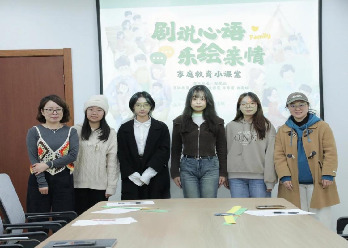 “剧说心语,乐绘亲情”家庭教育小课堂由我院2023级小学教育、公共事业管理专业与上海立信会计金融学院同学联合打造。课程专为6-12周岁儿童及家庭开设,秉持“心语共鸣,爱伴成长”理念,创新构建两轴三阶育人课程体系:横轴设置基础理论学习、心理情景剧演绎、家庭艺术疗愈三大课程板块;纵轴以家庭共同成长为导向,融合故事、艺术、音乐等多维互动形式促进亲子关系建设。