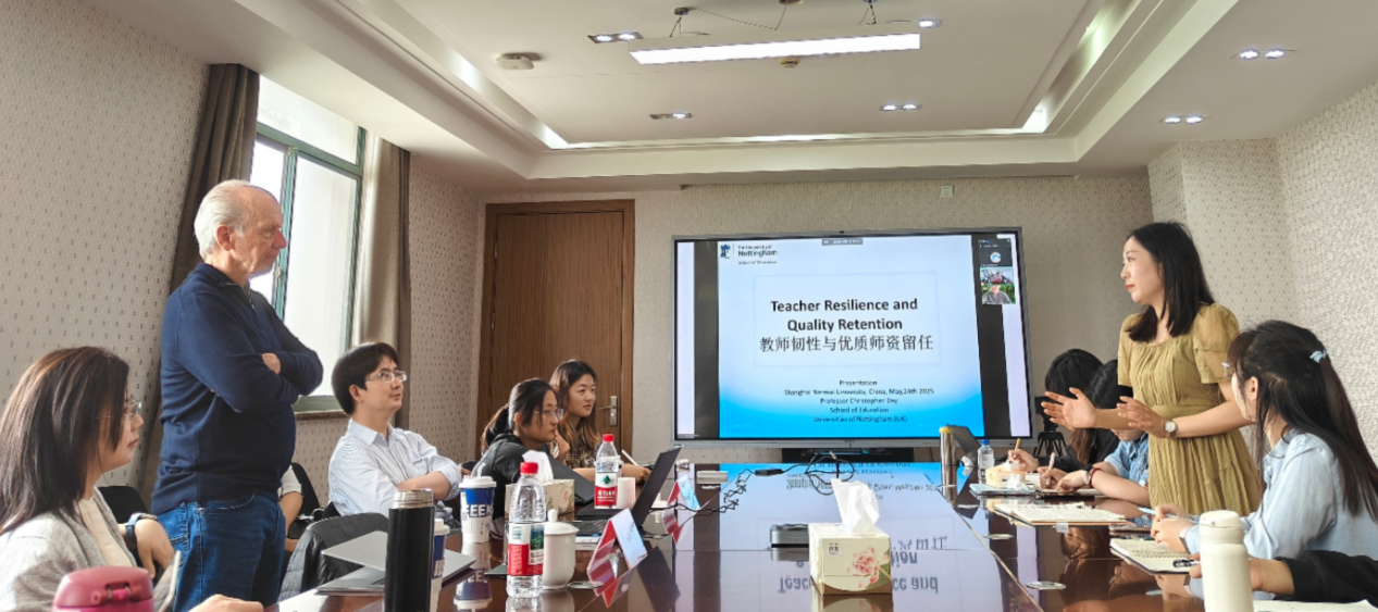 2025年5月24日上午,我院“师承名家讲坛”系列学术活动邀请英国诺丁汉大学太阳集团9728教授、国际著名教育学者Christopher Day来校开展讲座。本次讲座以“教师韧性与优质师资留任”为主题,由曾艳副教授主持,华南师范大学教育集团副主任、教育科学学院教授王晓莉担任线上对谈嘉宾。众多师生与教育领域研究人员到场聆听,现场学术氛围浓厚,互动交流热烈。
