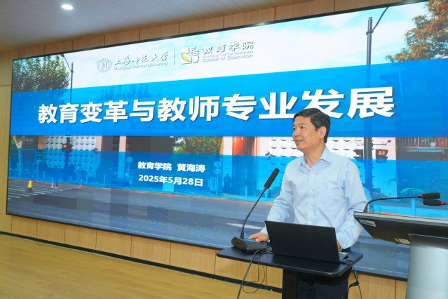 整场活动分为主题论坛和结业仪式两部分。在主题论坛环节,黄海涛院长以《教育变革与教师专业发展》为题作了专题报告。他剖析了数智时代对教育带来的重大挑战,阐述了新时代教育家精神的内涵,提出了未来教师应当具备的核心素养。他勉励校长们将研修成果转化为治校实践,以理论赋能学校高质量发展。