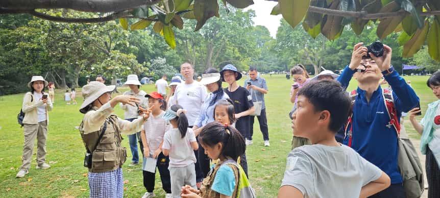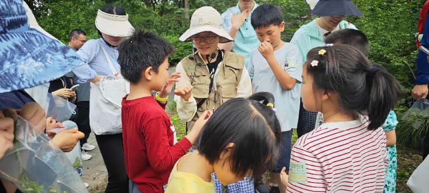 暖场活动结束后,小朋友们和家长们在专职讲师的带领下,边走边看,识别初夏植物生长特征,并学习其观察识别方法。最后,大家一起来到了上海动物园西北角约4万平方米区域的人工林。这片篇密林乔木参天、植被丰富,落叶在林下形成了深厚的腐殖层,倒伏的朽木随处可见。在这里,繁茂树木组成的林地里也有丰富的生态群落值得探索,小朋友们在树丛草堆朽木中也叶不时有新奇的发现。下午416时30分:30,活动圆满结束后,大家在生态站南侧的狮虎山原地解散。