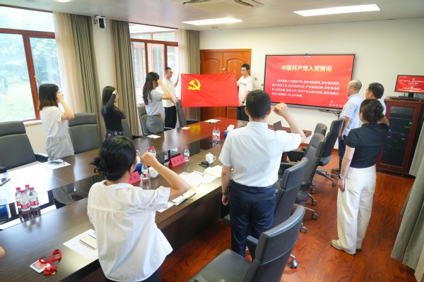 “我志愿加入中国共产党……”,在杨顺光领誓、张叶江监誓下,全体党员庄严重温入党誓词。铿锵誓言与于漪老师“顺境不自傲,受挫更刚强”的育人箴言形成精神呼应,进一步强化了党员在教育实践中“破心中贼、铸教育魂”的使命担当。