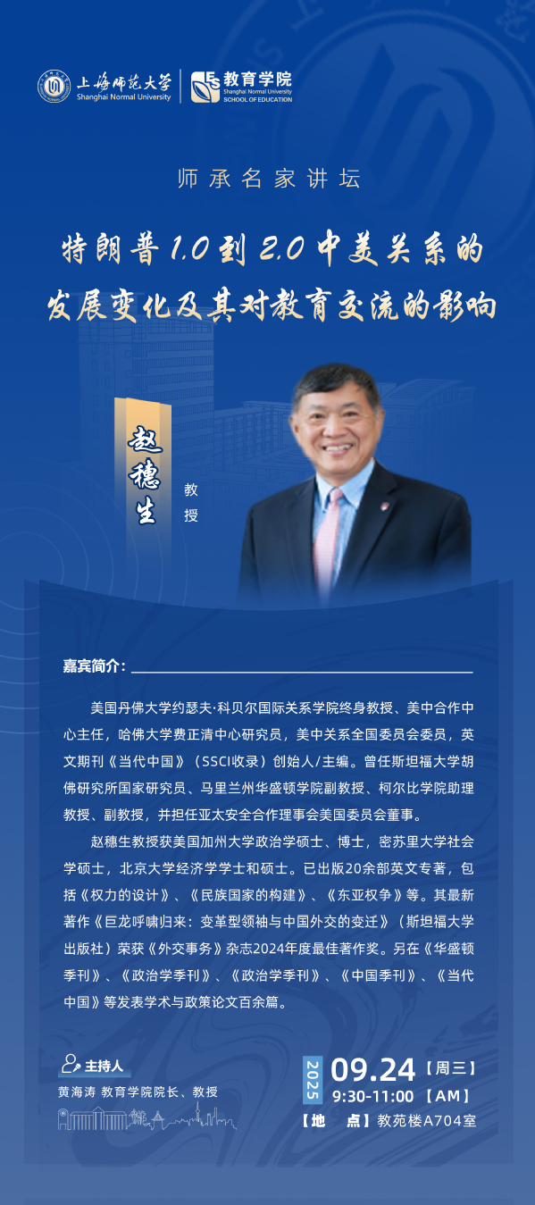 赵穗生教授获美国加州大学政治学硕士、博士,密苏里大学社会学硕士,北京大学经济学学士和硕士。已出版20余部英文专著,包括《权力的设计》、《民族国家的构建》、《东亚权争》等。其最新著作《巨龙呼啸归来:变革型领袖与中国外交的变迁》(斯坦福大学出版社)荣获《外交事务》杂志2024年度最佳著作奖。另在《华盛顿季刊》、《政治学季刊》、《政治学季刊》、《中国季刊》《当代中国》、等发表学术与政策论文百余篇。