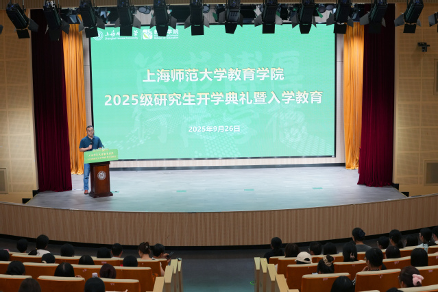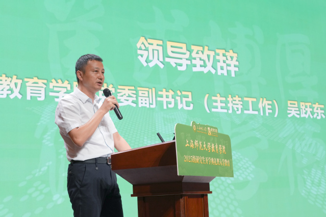 吴跃东在致辞中向新生表示热烈欢迎。他指出,同学们选择教育学科深造正值国家全面推进教育强国建设的关键时期,这一选择彰显了新时代青年的责任担当。吴书记简要介绍了学院深厚的办学积淀及其在服务国家战略和上海教育改革发展中的重要使命,并围绕“如何成为一名符合时代要求的教育研究者”这一主题,对新生提出三点期望。他勉励同学们将个人成长融入国家发展大局,坚持守正创新,夯实专业根基,努力成为教育强国的践行者、教育改革的推动者和终身学习的示范者。他表示,学院将永远是同学们坚实的后盾,全力支持每一位学子的成长与发展。