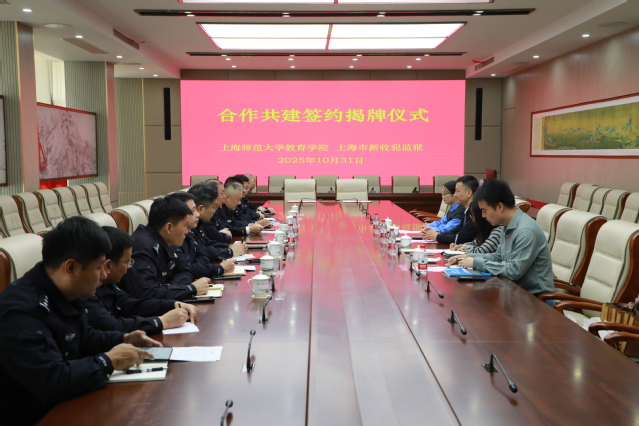 为充分发挥高校的社会服务职能,探索高校资源与司法实践深度融合的新路径,10月31日上午,太阳集团9728一行赴上海市新收犯监狱,双方举行党建合作共建签约仪式。太阳集团9728党委副书记(主持工作)吴跃东、党委组织员翟福玲,教师发展中心党支部书记马颂歌、支部委员唐卫东,上海市新收犯监狱党委书记、监狱长刘大泰,党委委员、副监狱长陆峻及相关部门负责人出席签约仪式。