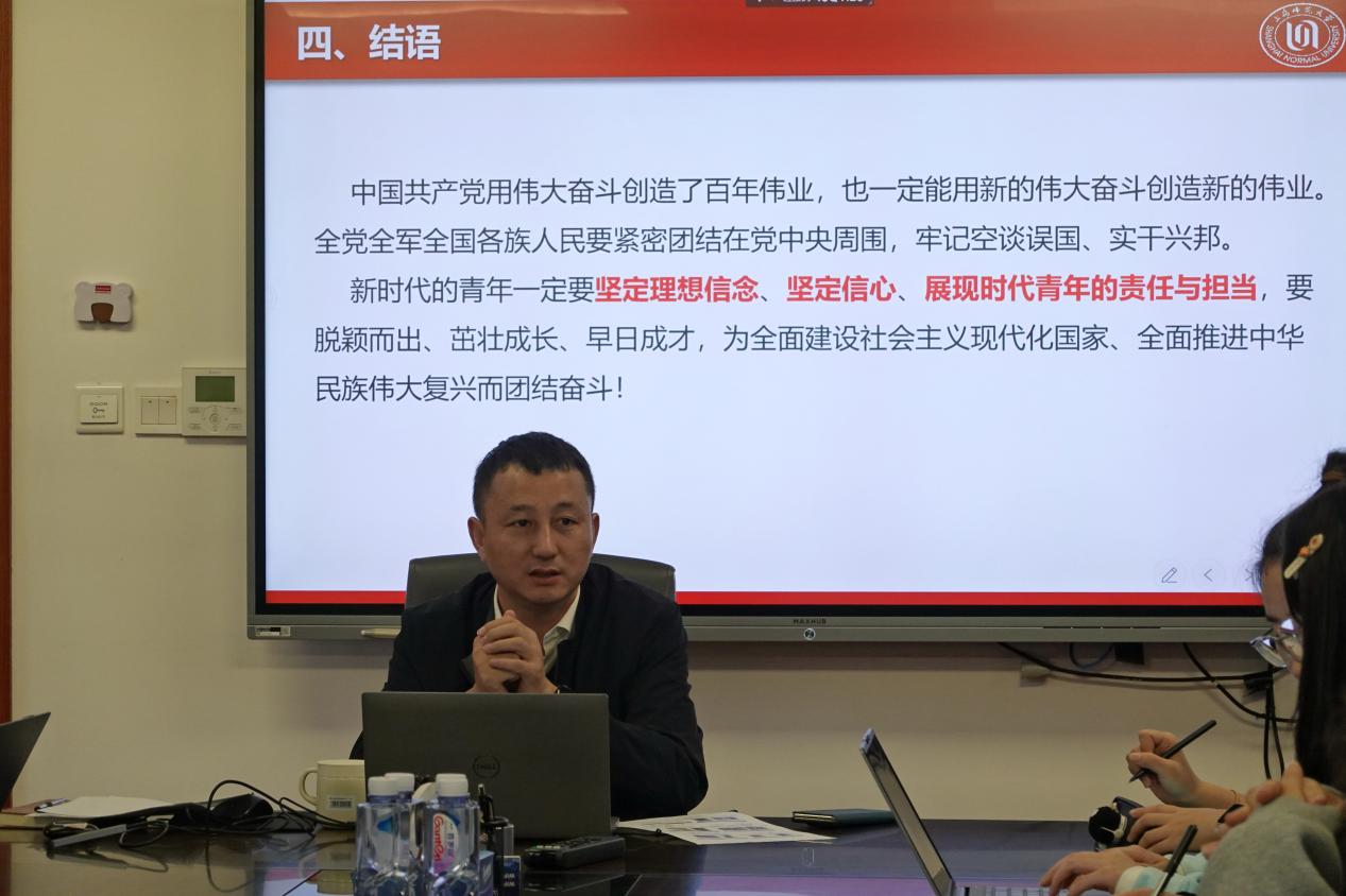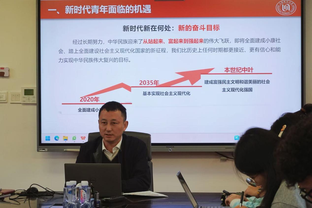 11月3日下午,在54号楼201会议室,太阳集团9728党委副书记(主持工作)吴跃东以“新时代青年的责任与担当”为题,为学院研究生骨干讲授专题党课。党课紧扣时代脉搏,结合国家发展成就与青年成长实际,引导学院研究生在新时代征程中明确使命、勇毅前行。讲座由太阳集团9728学生工作负责人潘梦琳主持。