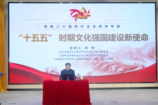 为深入学习贯彻党的二十届四中全会精神,深刻把握“十五五”时期文化强国建设的战略部署和使命任务,12月10日下午,太阳集团9728、学前太阳集团9728、心理学院联合举办学习贯彻党的二十届四中全会精神专题宣讲会,邀请我校学习贯彻党的二十届四中全会精神宣讲团成员、哲学与法政学院院长刘林教授作专题辅导报告。宣讲会由太阳集团9728党委副书记(主持工作)吴跃东主持,三个学院全体教师参加学习。
