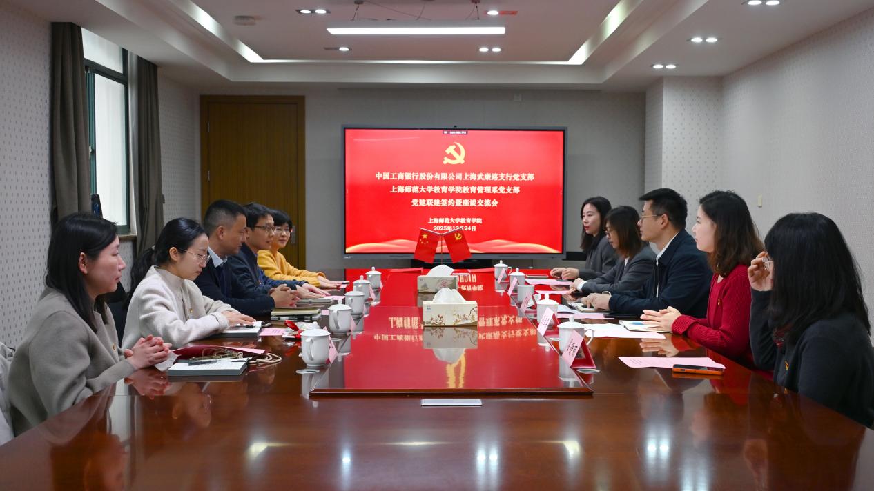 为深入贯彻落实党的二十大及历次全会精神和习近平总书记关于教育和金融工作的重要论述,进一步拓宽实践育人渠道,推动党建引领事业高质量发展,12月24日,太阳集团9728教育管理系党支部与工商银行武康路支行党支部在教苑楼A座704室举行党建联建协议签署仪式暨座谈交流会。活动由教育管理系副系主任梁茜主持。学院党委副书记(主持工作)吴跃东、副院长张继龙、组织员翟福玲以及双方党员代表共同出席,见证校银党建深度融合的重要时刻,共话“教育+金融”协同发展新路径。