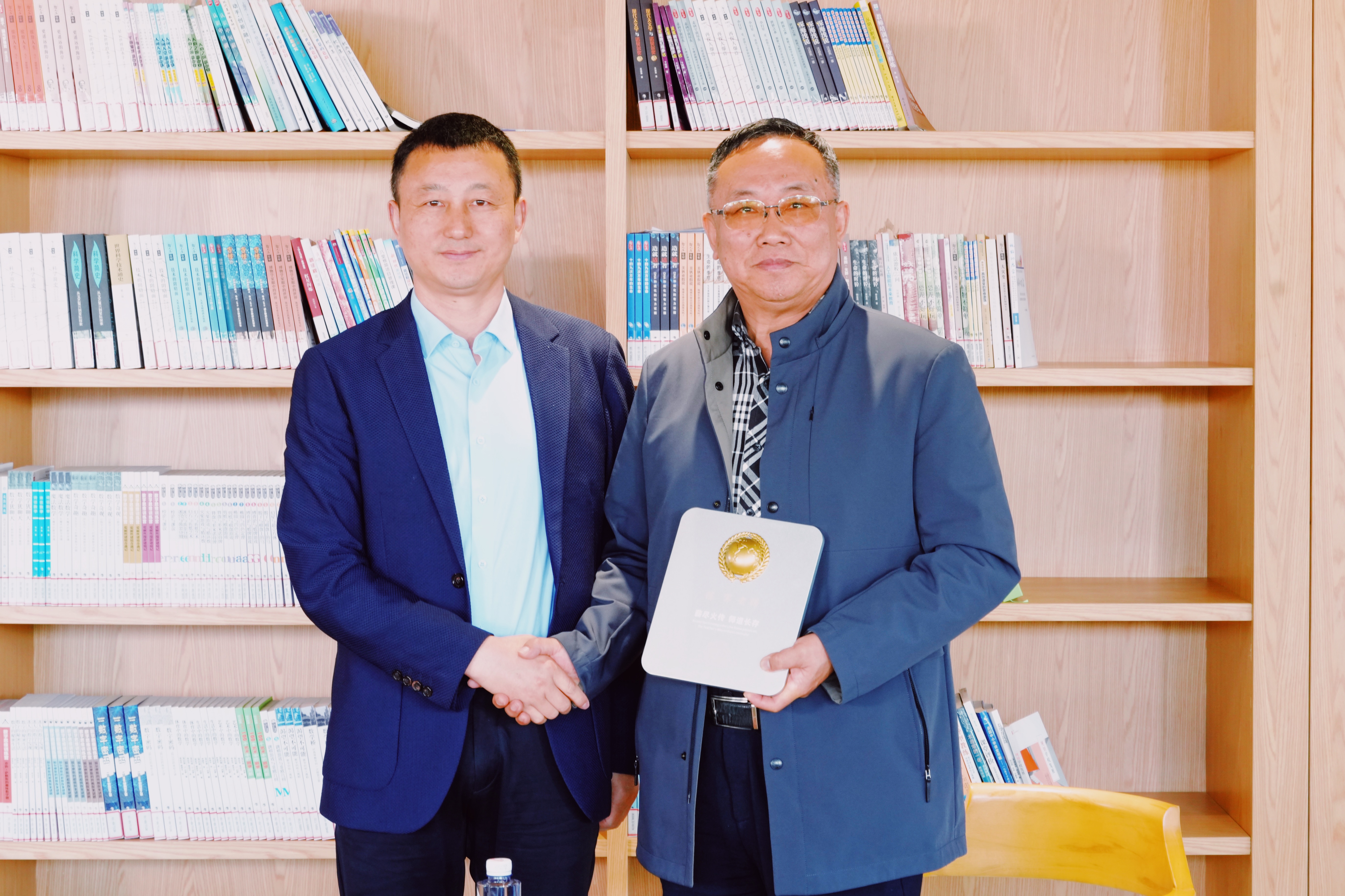吴跃东为陈校长颁发“师道传承:教育家精神数字记忆库”定制纪念奖牌,感谢陈校长对项目的大力支持,致敬其四十三载躬耕教育、立德树人的不懈坚守。宁彦锋和许苏表示会继续深挖优质教育资源,萃取名校长、名师育人智慧,让优秀教育思想可留存、可传播、可借鉴,推动师道精神绵延赓续。